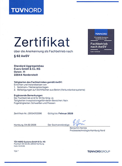 Heute sind beide Werke nach DIN EN ISO 9001:2015 zertifiziert und außerdem ausgewiesene Fachbetriebe nach Wasserhaushaltsgesetz.